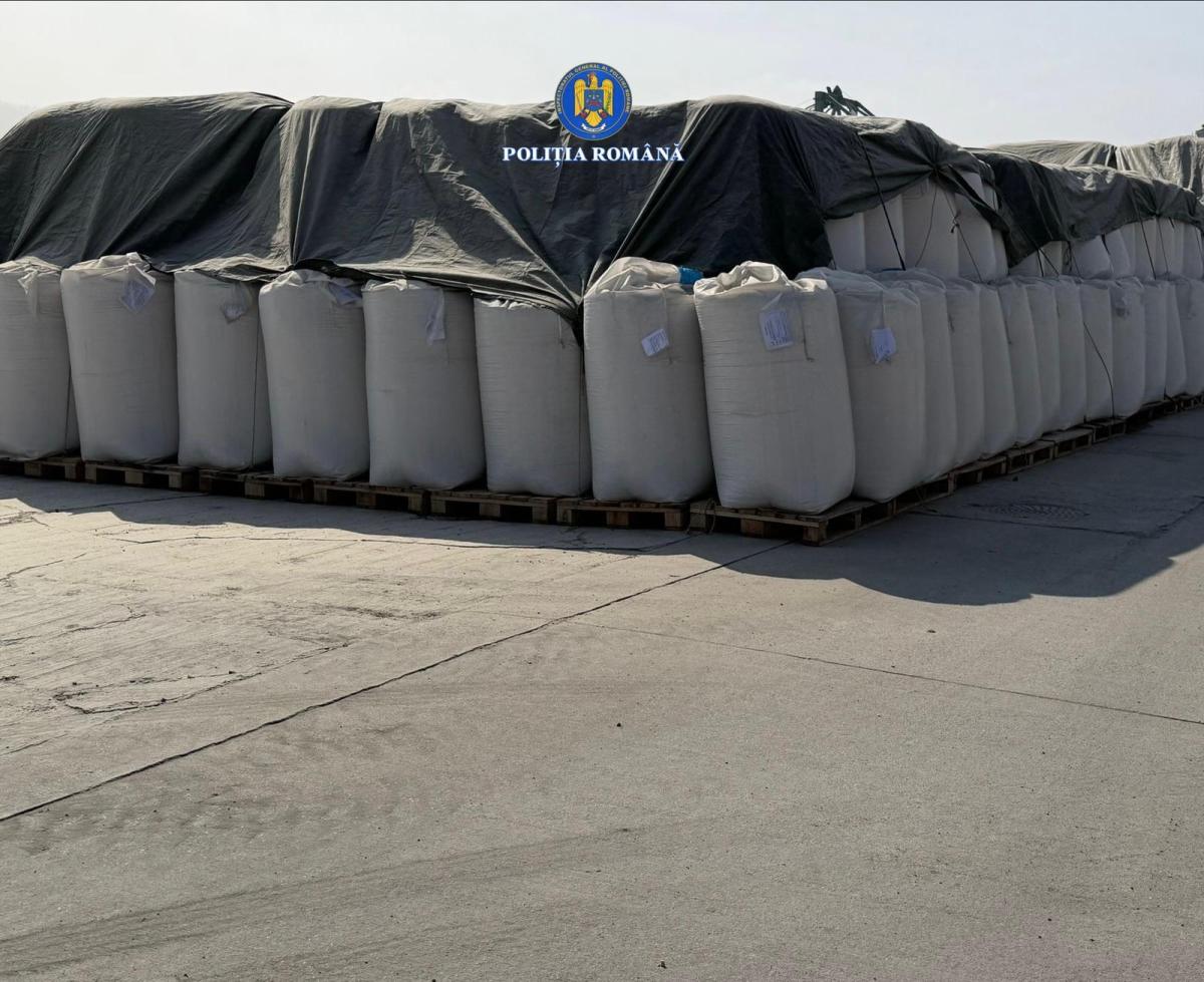 Îngrășăminte chimice cu conținut de azot, depozitate în apropierea unui bazin de combustibil. FOTO Poliția Română